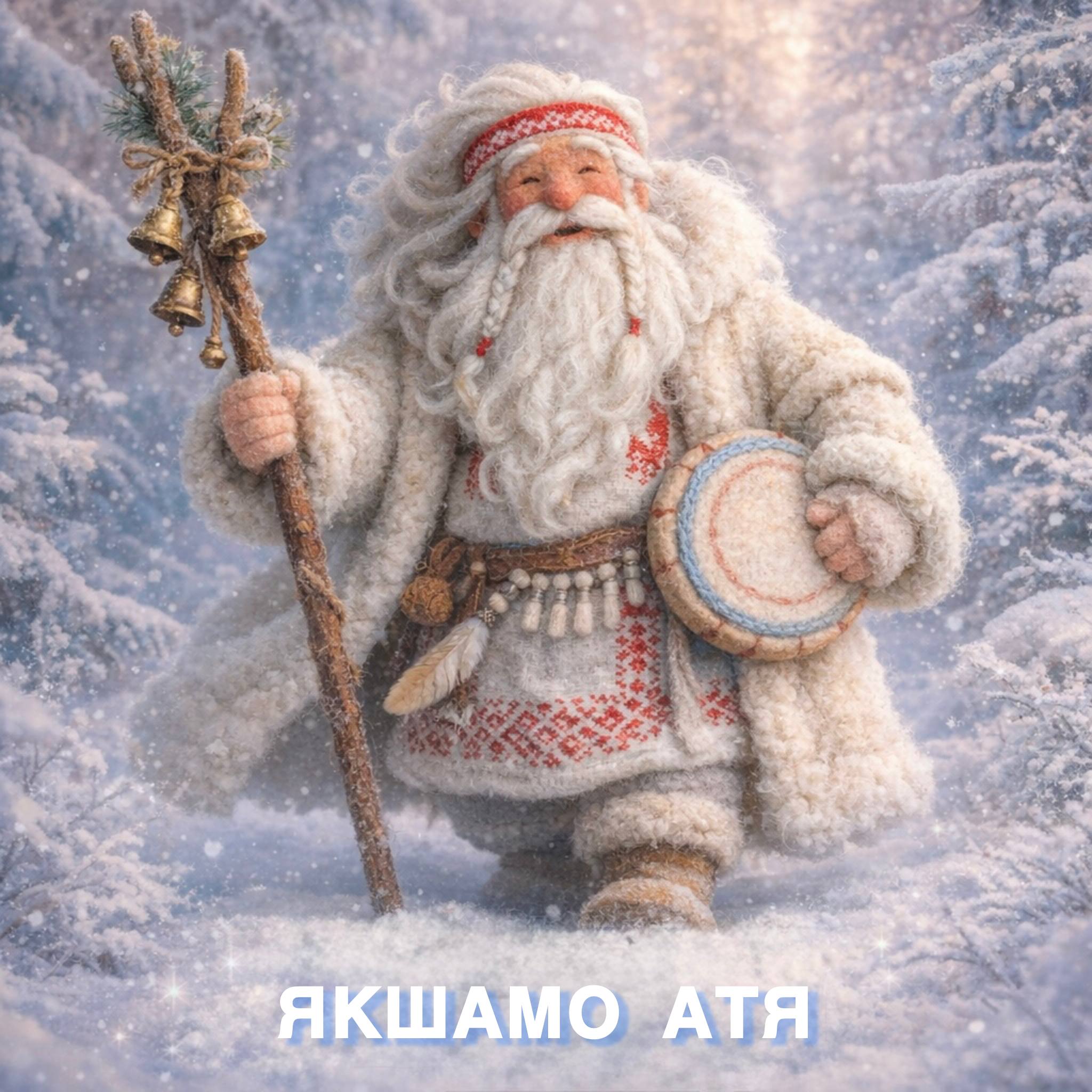 Мордовский Дед Мороз Якшамо Атя живёт рядом с людьми, помогает им в зимнюю пору. Детям дарит зимние забавы, вкусные подарки да обереги. Вместо посоха с собой берёт рогатину с колокольчиками.