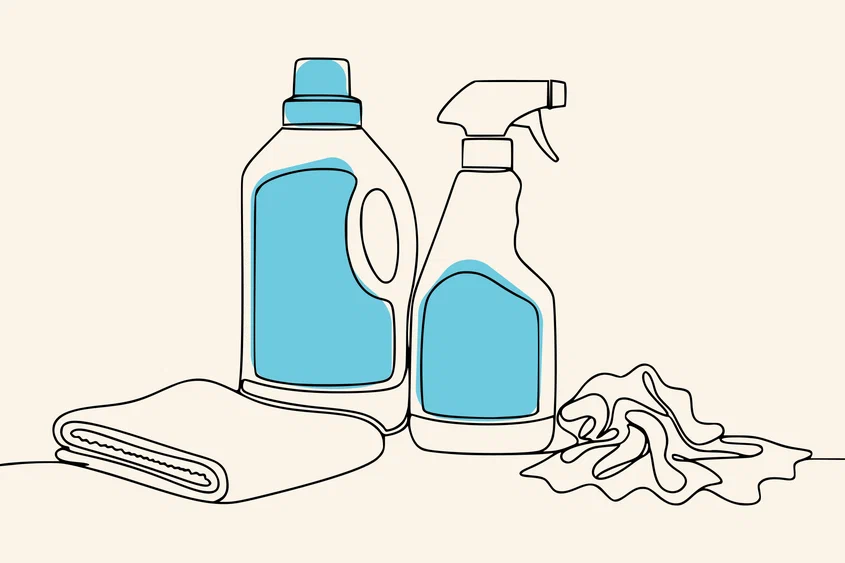 - Подготовка: Обезопасьте мебель, накрыв её пленкой. Не забывайте о перчатках, чтобы избежать царапин. Используйте мягкие тряпки, ведро с теплой водой и жидкое мыло.