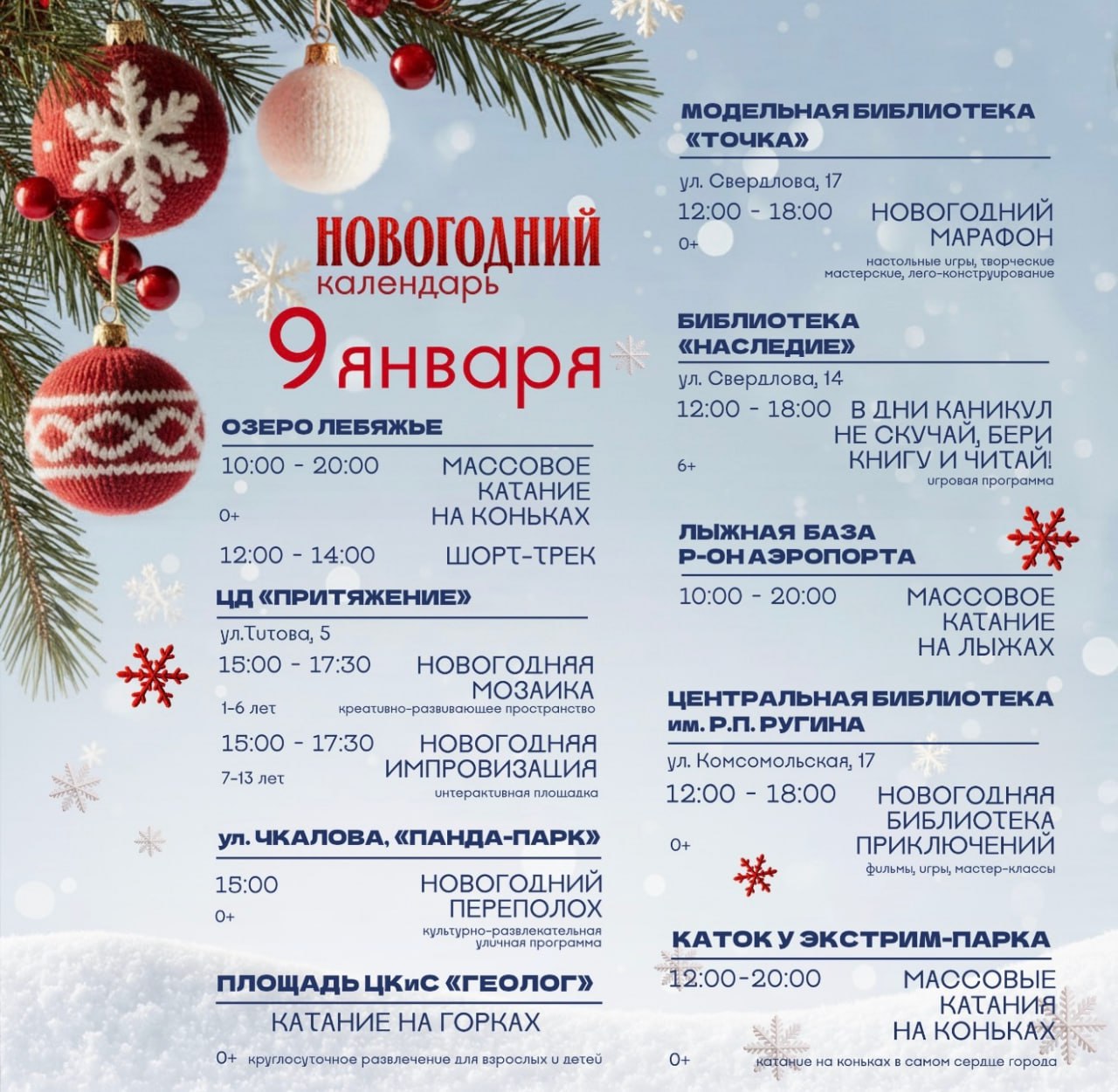 У нас есть ещё 2 дня, чтобы, например, успеть на мастер-классы или проехаться по лыжне.Вот что мы подготовили для вас:ЦД «ПРИТЯЖЕНИЕ»• Адрес: ул. Титова, 5• 13:00 - «Зимняя сказка»: мастер-класс по...