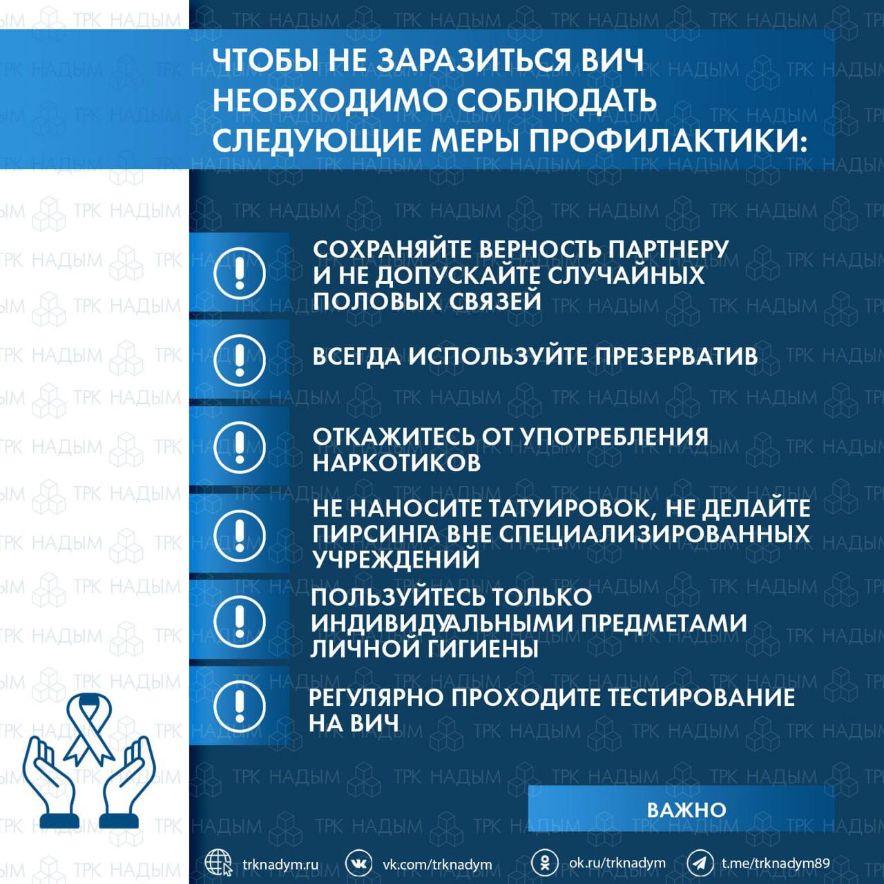 Тестирование проводится бесплатно и анонимно. Все желающие его пройти, могут обратиться в кабинет №13 Надымской ЦРБ, с понедельника по четверг, с 08:00 до 15:00, пятница - с 08:00 до 09:30.
