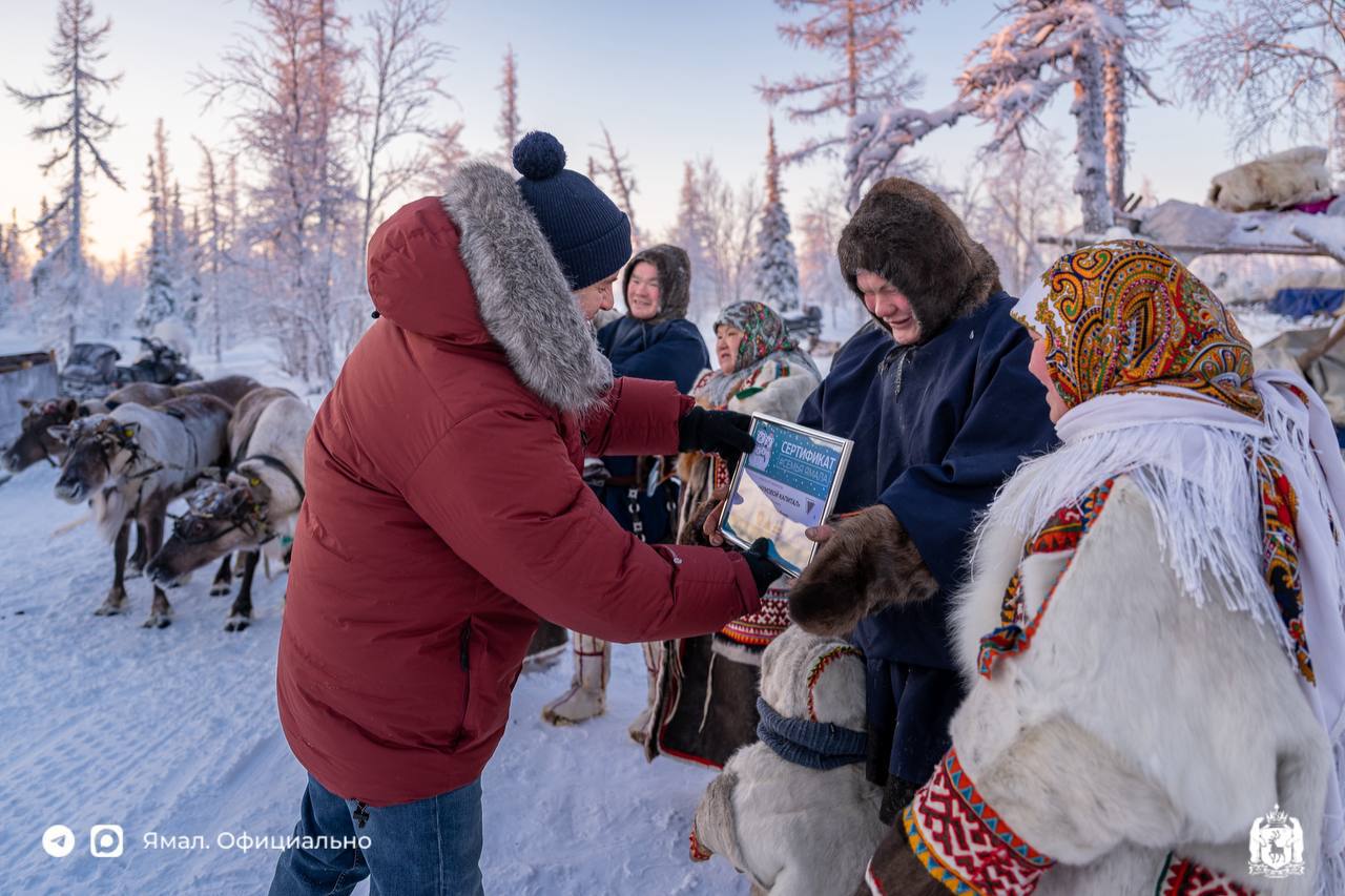 Его получили Дмитрий и Дарья Вэненго, кочующие в Приуральском районе. В октябре 2025 года у них родилась дочь Василиса, а старшему сыну Кириллу в этом году исполнится два года. Сейчас молодая семья живёт в одном чуме с родителями Дмитрия, но благодаря поддержке округа скоро смогут обустроить собственный дом в тундре.