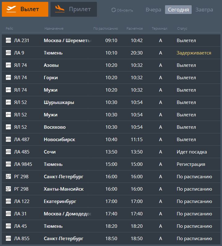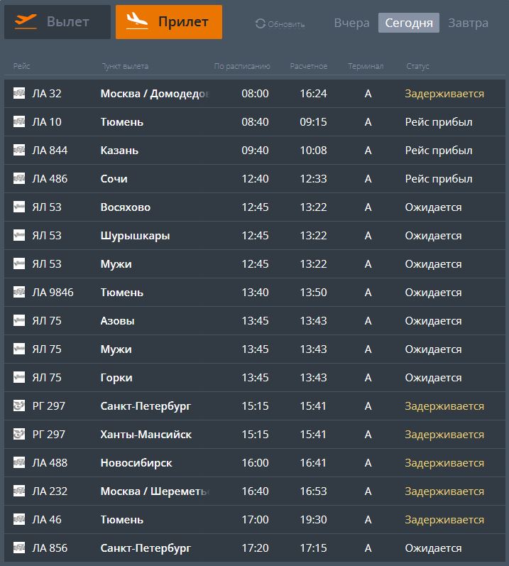 Фото: скриншоты онлайн-табло аэропорта Салехарда