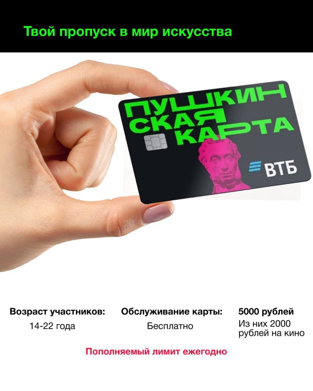 Кроме того, по «Пушкинской карте» молодежь может посещать выставки в Музейном центре и Музее воинской славы имени В.М. Григора, смотреть спектакли, ходить на концерты и другие культурные мероприятия. С нового года оператор программы — Банк ВТБ. Оформить карту можно в онлайн-банке, в офисе и на сайте Госуслуги Культура - culture.gosuslugi.ru