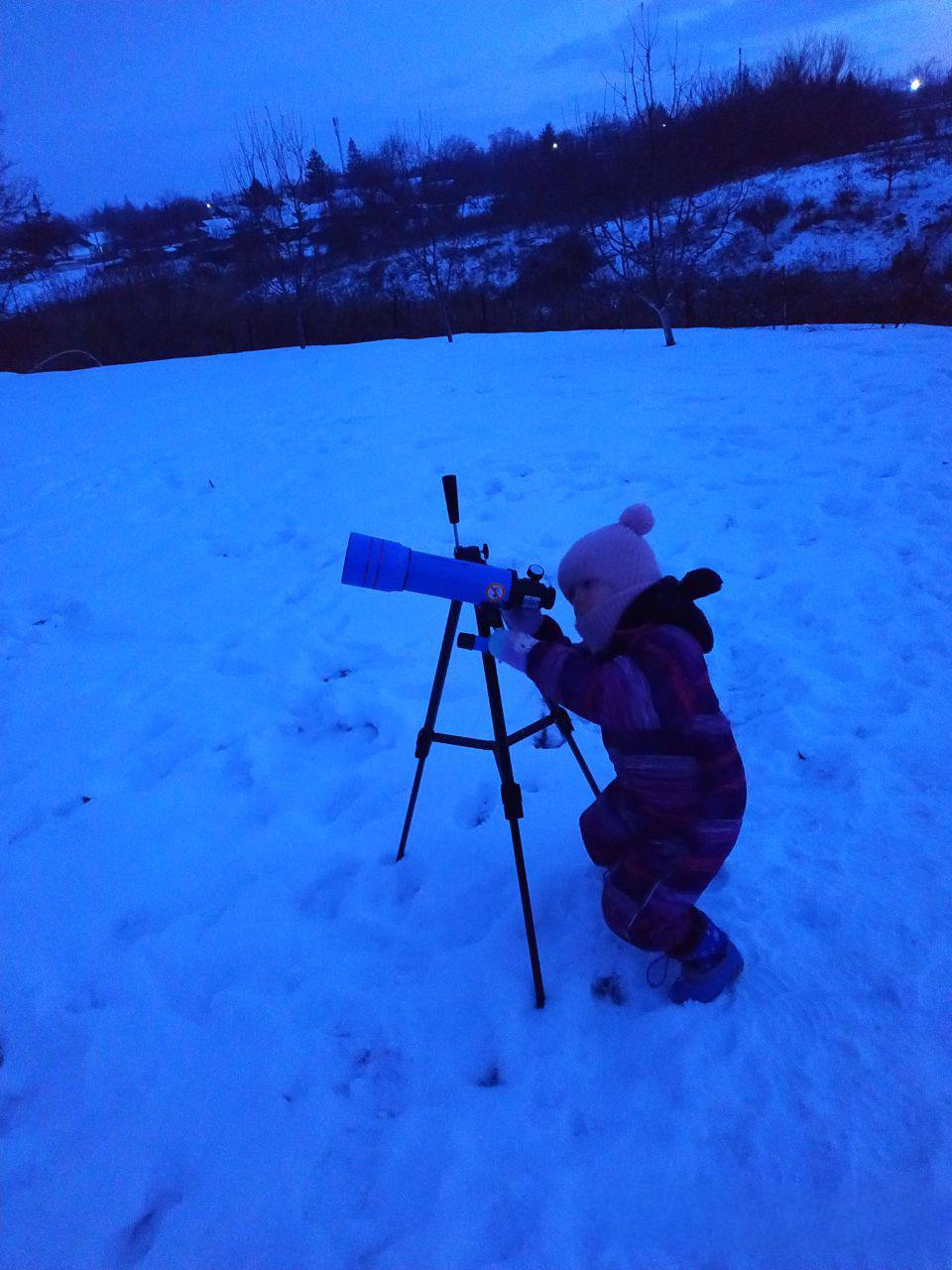 Новый телескоп поможет малышке сделать первые шаги в познании Вселенной. Кто знает, возможно, именно с этого подарка начнётся путь будущего учёного или исследователя.