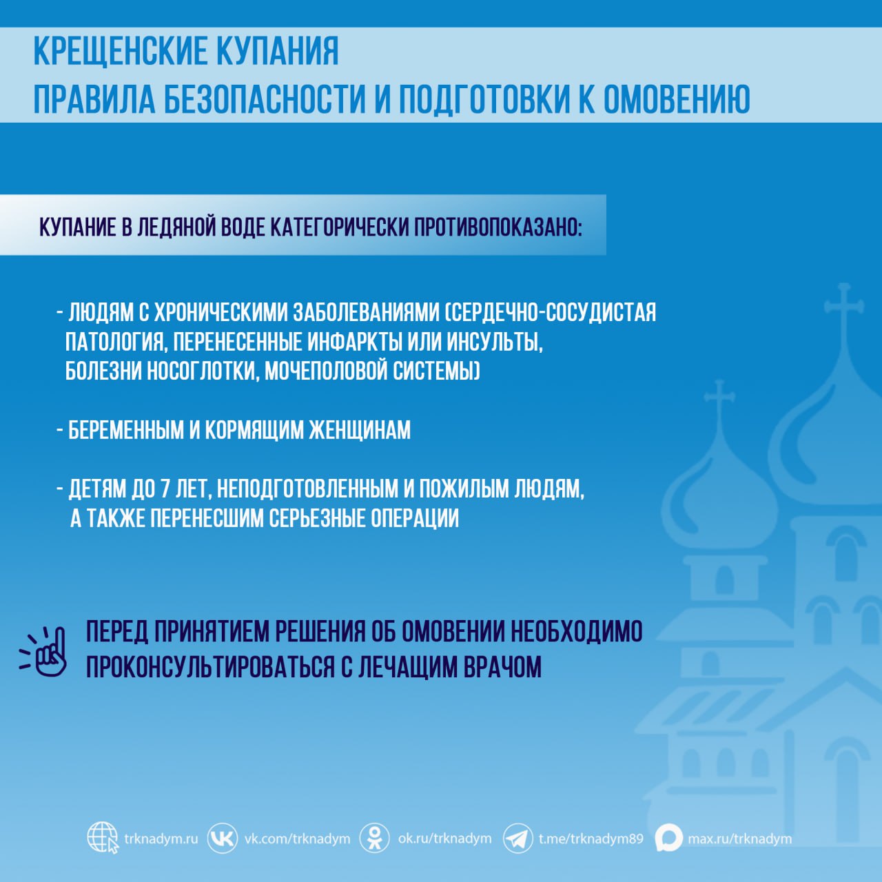 Медики напоминают о том, что погружение в прорубь — это стресс для организма! И призывают подойти к ритуалу омовения ответственно, чтобы избежать угрозы здоровью.