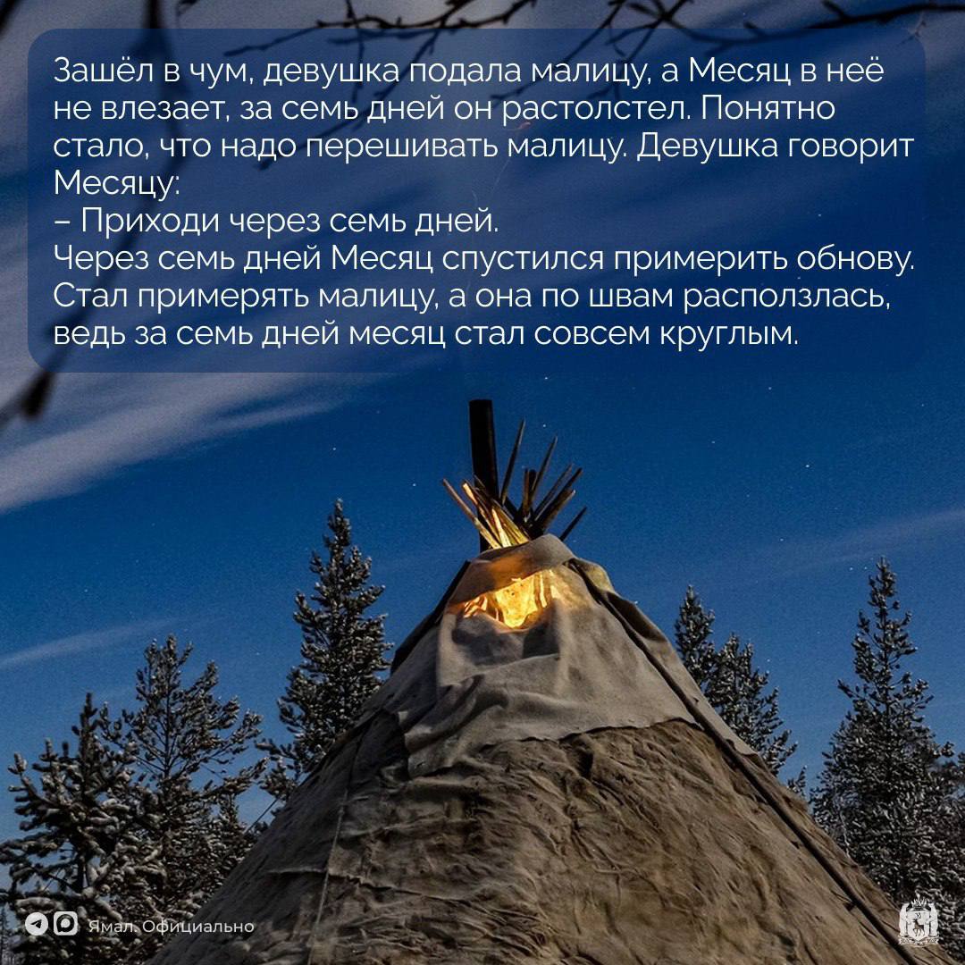В ненецком предании, записанном собирательницей фольклора Надеждой Салиндер, зашифрованы вековые наблюдения северного народа за фазами луны.