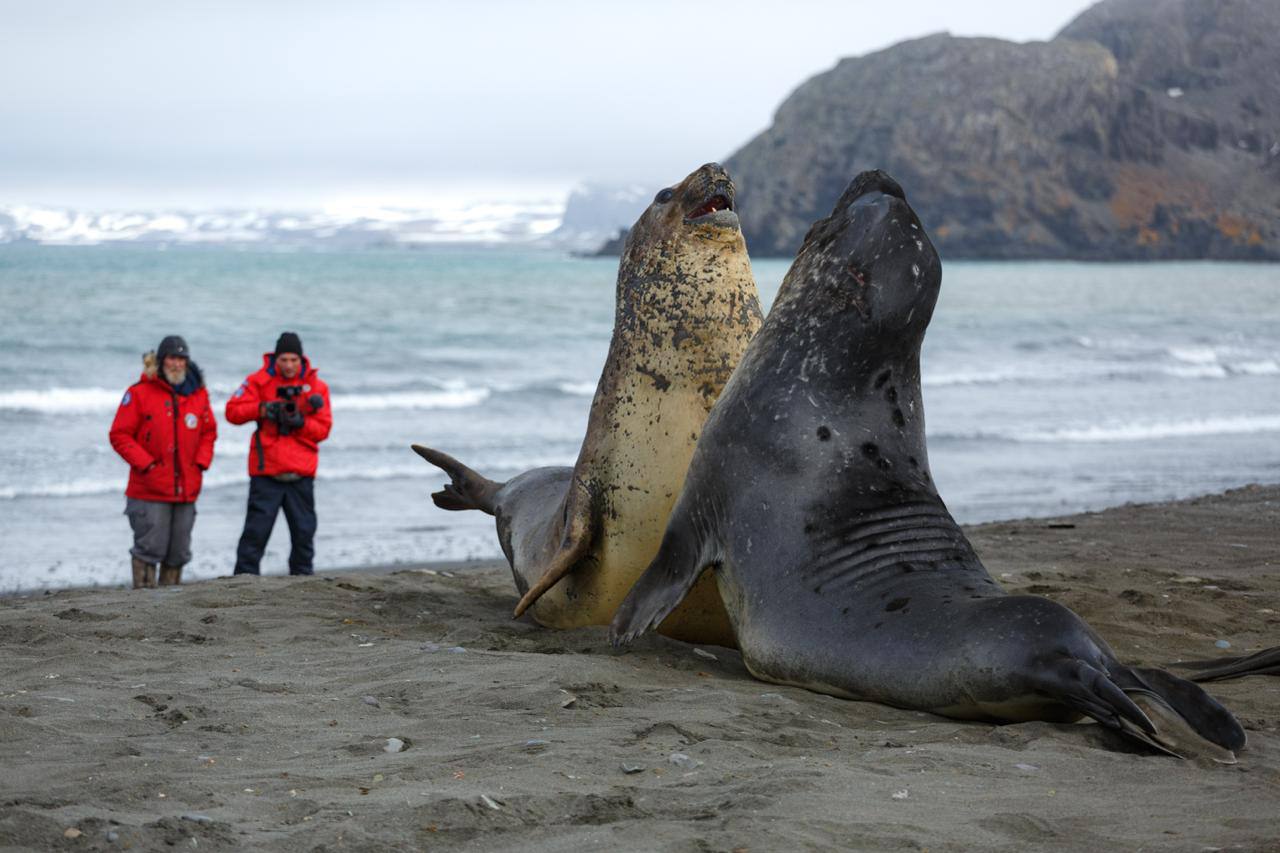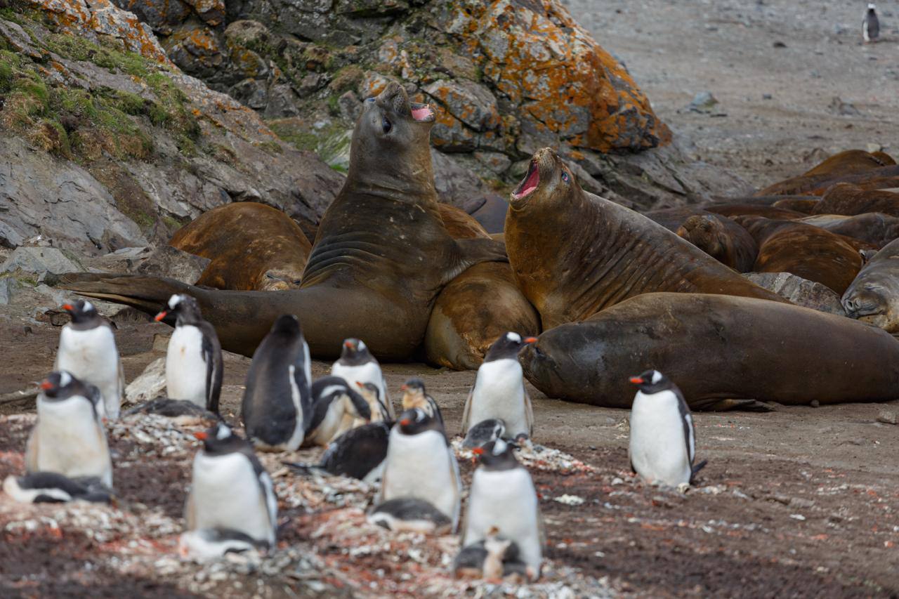 Несмотря на грозный вид и рекорды погружения до 2 километров, у этих титанов очень забавные и почти человеческие лица. На острове Смоленск они игнорируют пингвинов, но начинают заметно волноваться при виде человека.