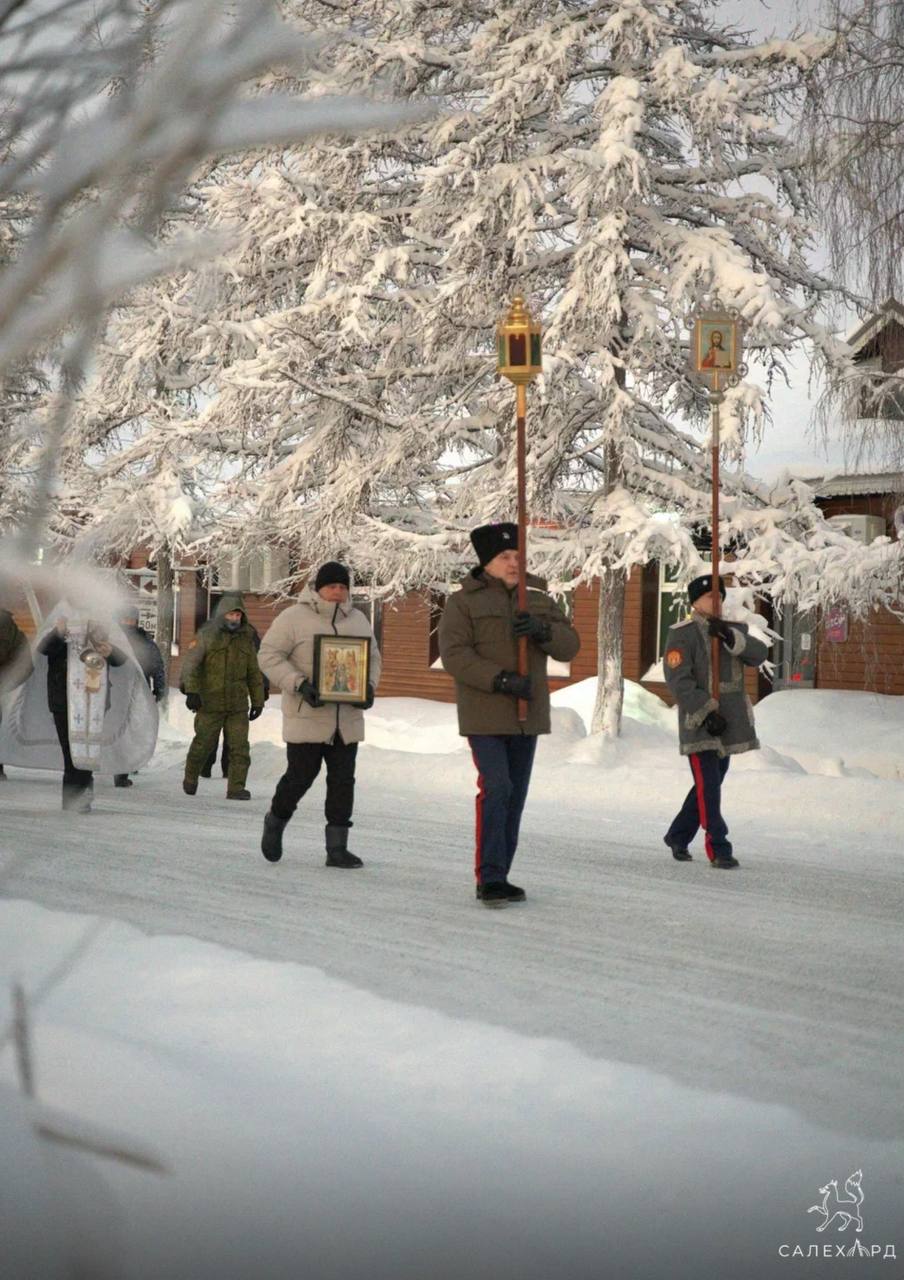 Крещение Господне салехардцы отметили крестным ходом. После утренней службы верующие направились к реке Полуй, где по традиции была обустроена крещенская Иордань.