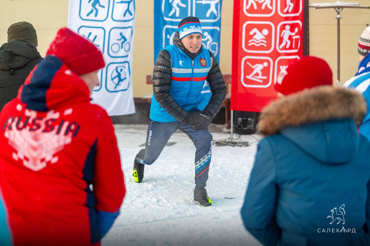 Первую прогулку провел чемпион России по биатлону, директор Школы Т. Ахатовой Александр Попов. Перед массовым забегом по салехардской лыжне Александр провел для участников профессиональную разминку.
