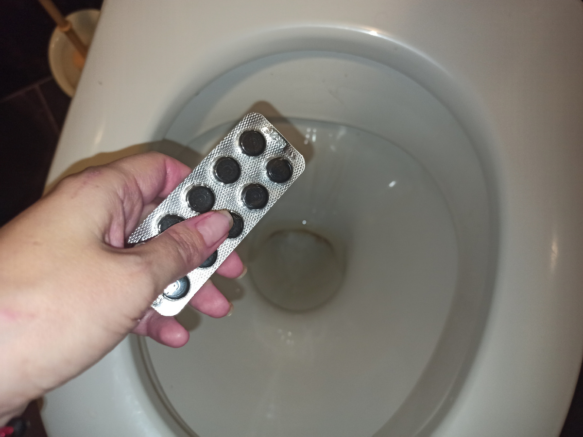 - Разместите три таблетки аспирина в сливном отверстии.