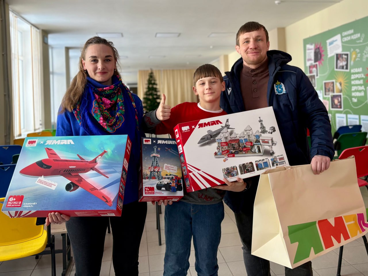 Один из участников акции стал обладателем большого конструктора в виде аэропорта Нового Уренгоя с самолетом, вышкой и вездеходом. Двум девочкам подарили велосипед и набор для творчества.