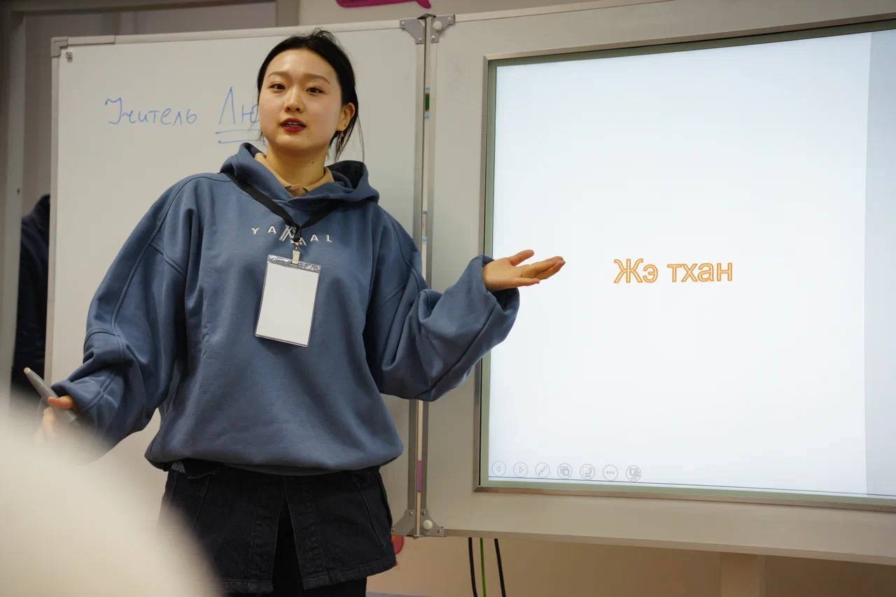 Студенты провели открытый урок для учащихся Обдорской гимназии. Лекцию для юных салехардцев провела Лю Тяньчжи. В занятии приняли участие школьники с 1 по 7 классы, изучающие китайский язык.