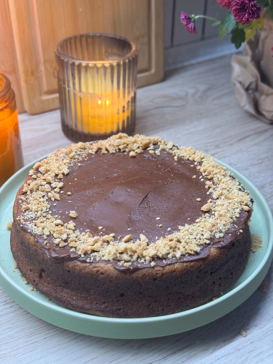 Когда кекс готов, дайте ему немного остыть, а затем аккуратно выньте из формы. По желанию, его можно украсить растопленным шоколадом и измельченным печеньем — так он станет еще более привлекательным.