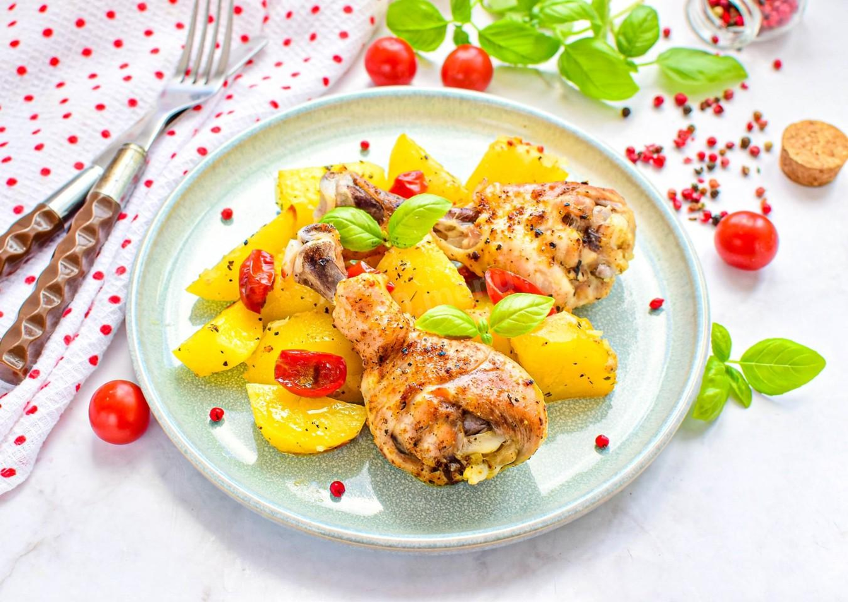 Запечённые в рукаве куриные ножки с картошкой – это отличный выбор для быстрого и сытного обеда. Использование рукава для запекания делает мясо особенно сочным, а картофель – ароматным и мягким.