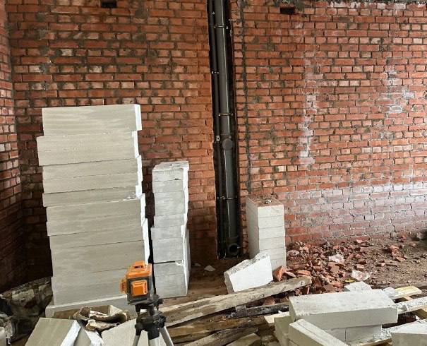 Строители выполнили кладку наружных стен и внутренних перегородок, монтаж бетонных перемычек оконных проемов, а также укладку плит перекрытия на уровне пятого этажа. Завершен монтаж лестничных маршей и лестничных пролетов пятого этажа. Продолжаются работы по возведению внутренних стен. Также в доме начаты работы по внутренних инженерных систем.