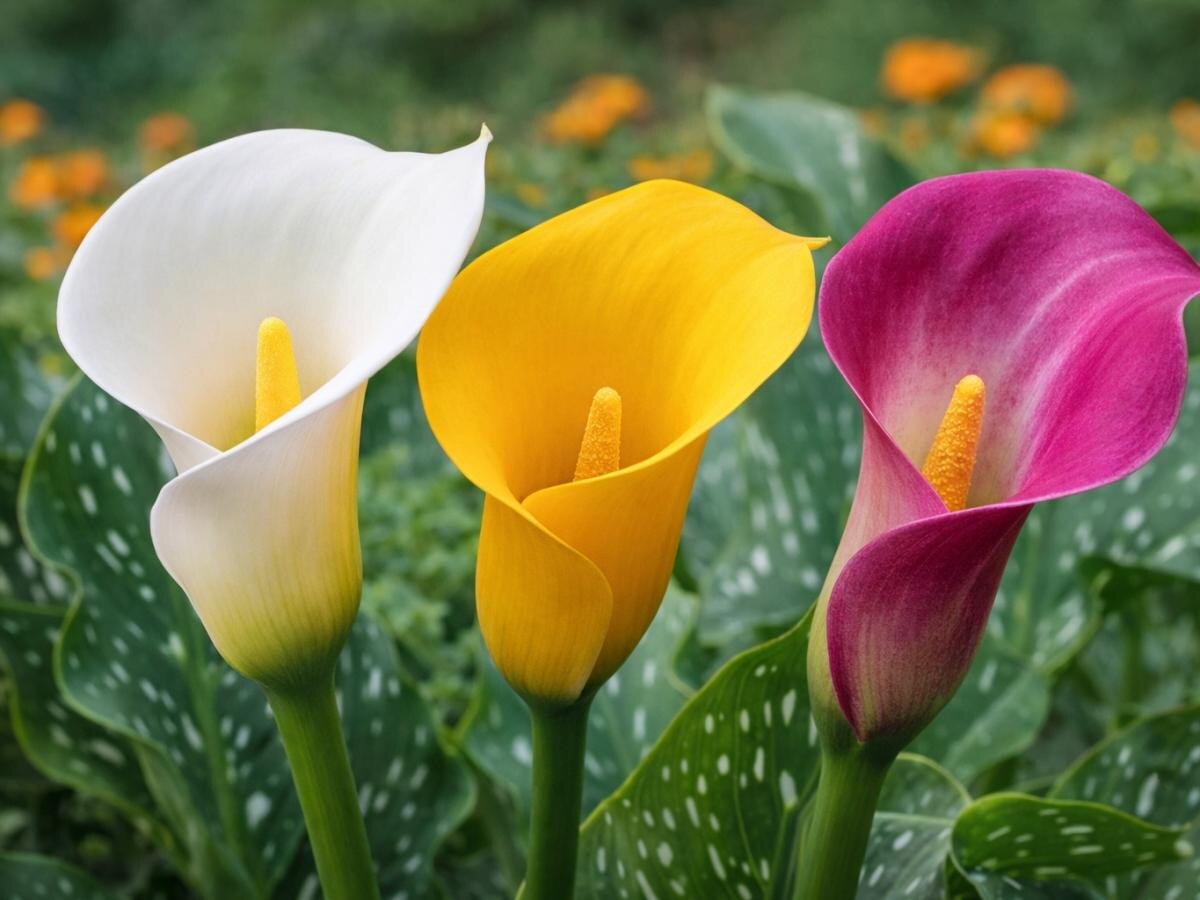 Существует клубневая калла и эфиопская. Клубневые дарят пышность и быстрый рост, эфиопские отличаются мощными корневищами и устойчивостью к внешним условиям. В числе популярных сортов — гибриды с яркими оттенками, от белых до фиолетовых.