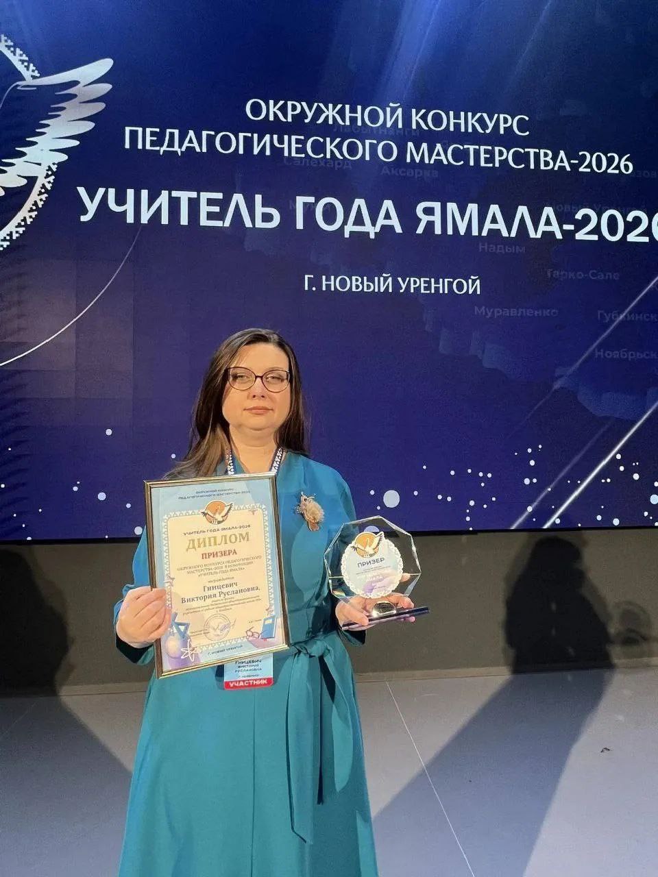 По итогам конкурса Анна Викторовна Шушпанова удостоена почётного звания Учитель года Ямала - 2026, а Виктория Руслановна Гницевич стала призёром.