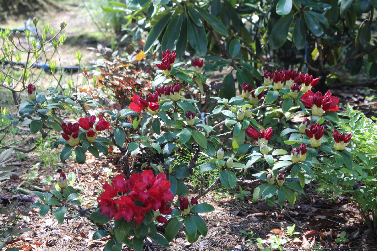 В этом сезоне цветение рододендронов удивило своей неординарностью. Например, Pumuckl из средней группы начал радовать своим цветом, в то время как рододендрон Костера из ранней волны пока еще не раскрыл свои цветки. Очевидно, здесь что-то сбилось с привычного графика.