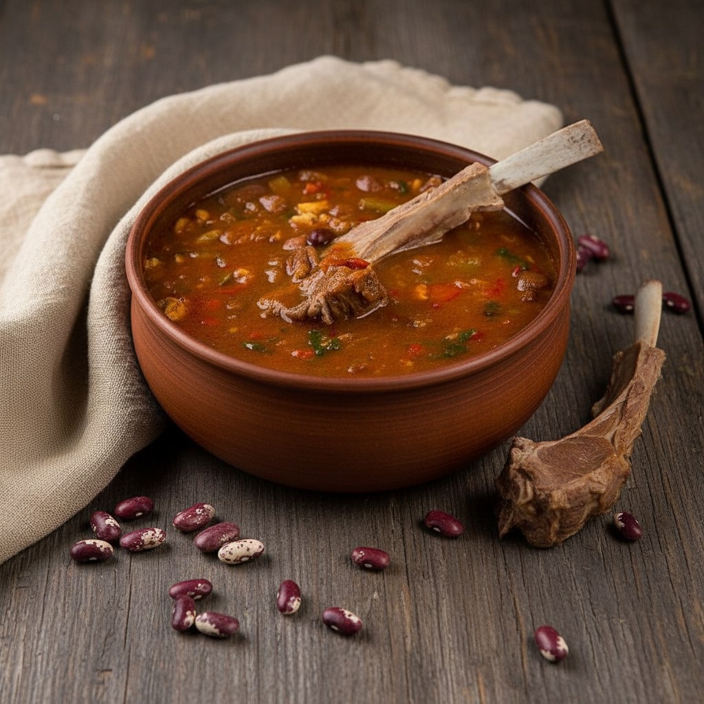 Суп Кадуры Баш готов! Подавайте его горячим с хрустящим осетинским хлебом — чуреком. Этот насыщенный и ароматный суп подарит вам истинное наслаждение и зарядит энергией на весь день.
