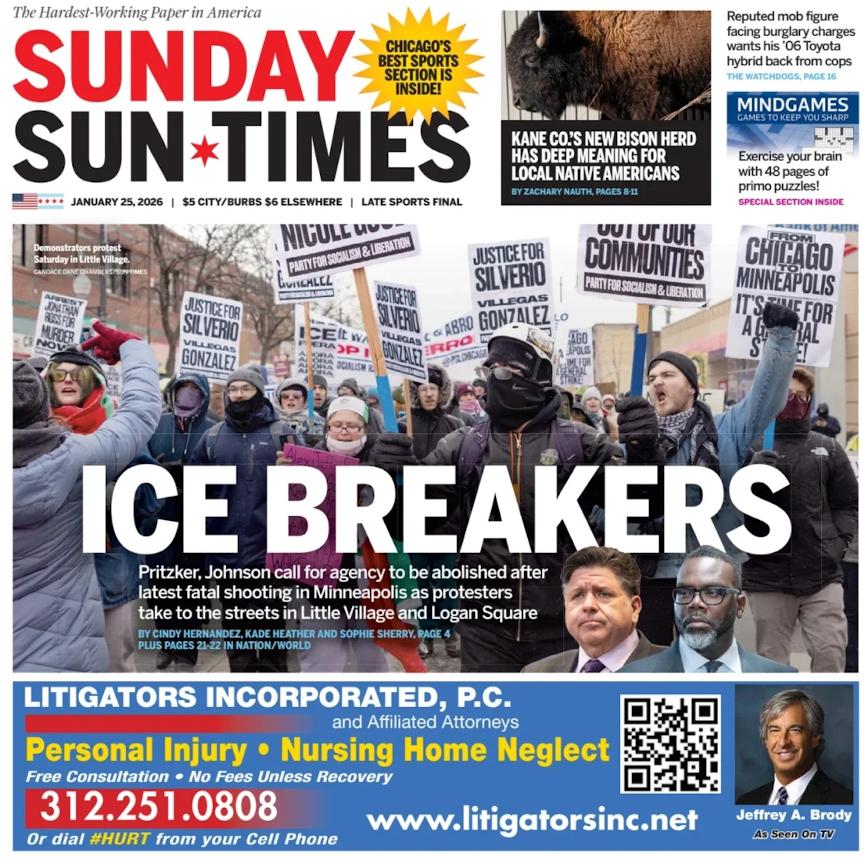 Стоит ли говорить, что американские еженедельники практически полностью посвящены событиям в Миннеаполисе и борьбе либералов против миграционной полиции ICE.
