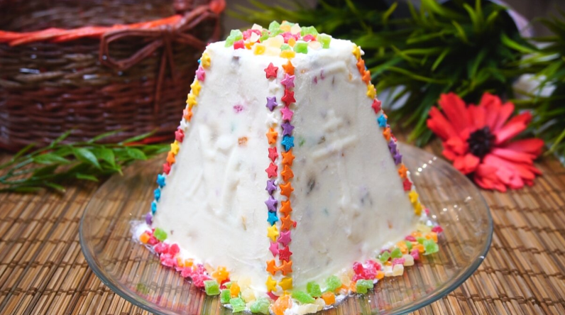 По истечении времени, пасху можно аккуратно извлечь и украсить по вкусу: сахарной пудрой или цукатами.