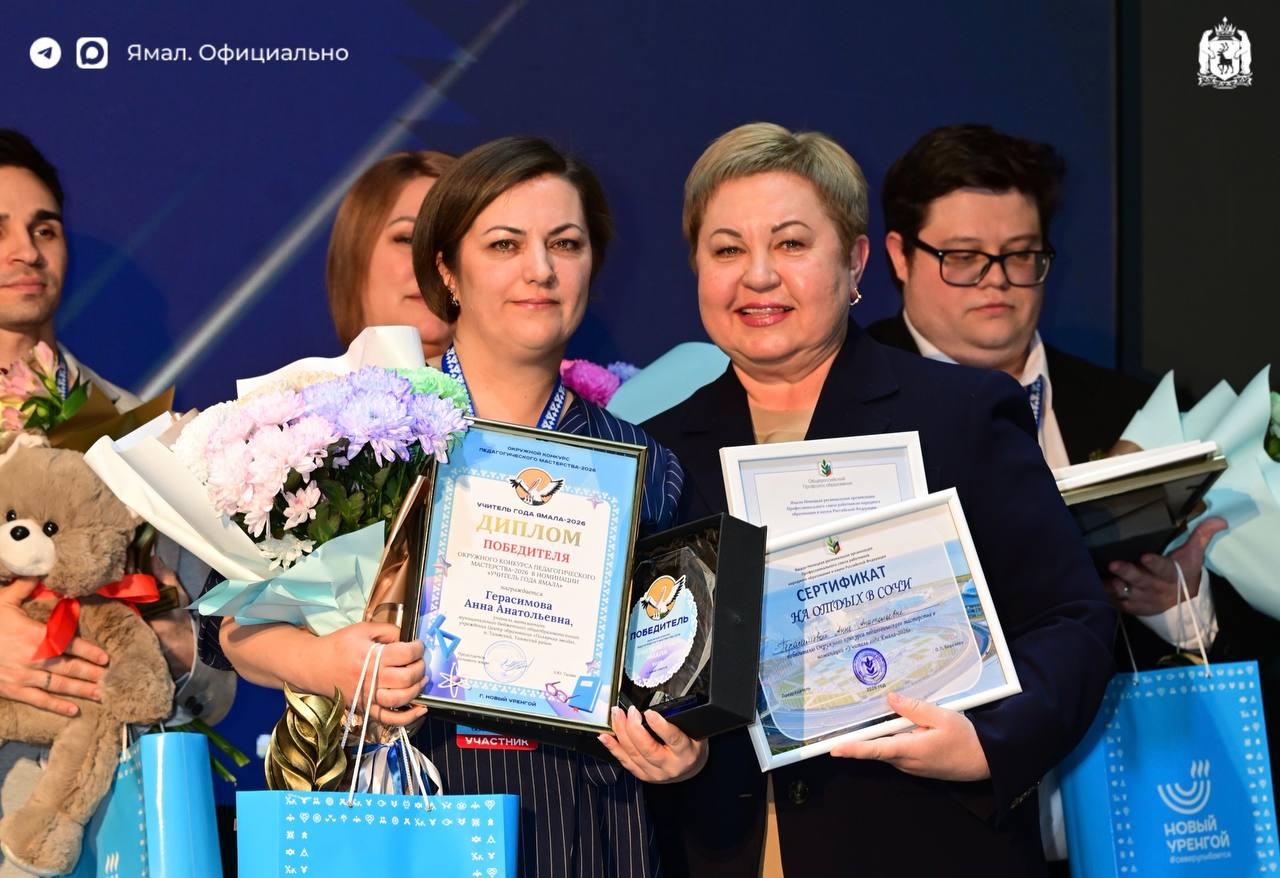 Учителями-победителями стали Владимир Бовин из Муравленко, преподаватель русского языка и литературы в Центре образования Школа РОста, Анна Шушпанова из ноябрьской школы 12, учитель иностранного языка, и Анна Герасимова, учитель математики Центра образования Полярная звезда в Тазовском.