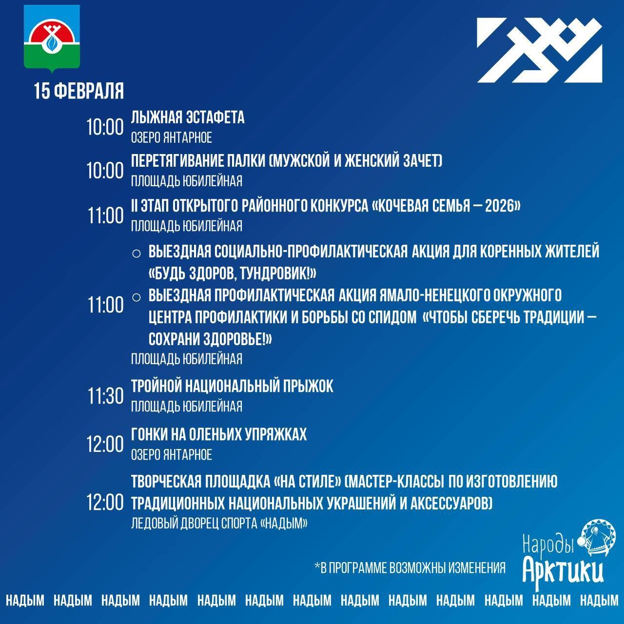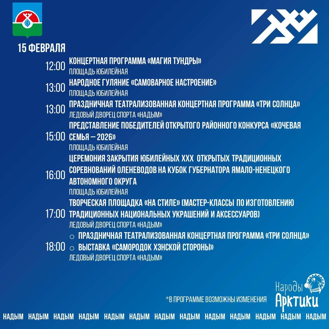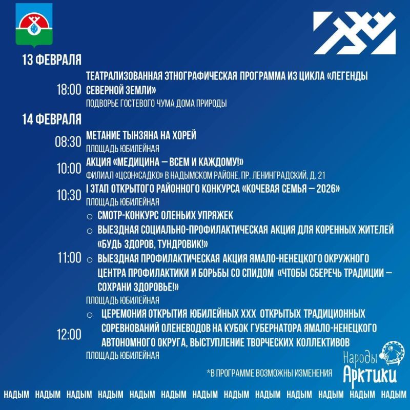 Чуть больше недели остается до старта юбилейных 30-х Открытых соревнований оленеводов на Кубок губернатора Ямала. Подробную программу праздника администрация Надымского района опубликовала в группе ВКонтакте