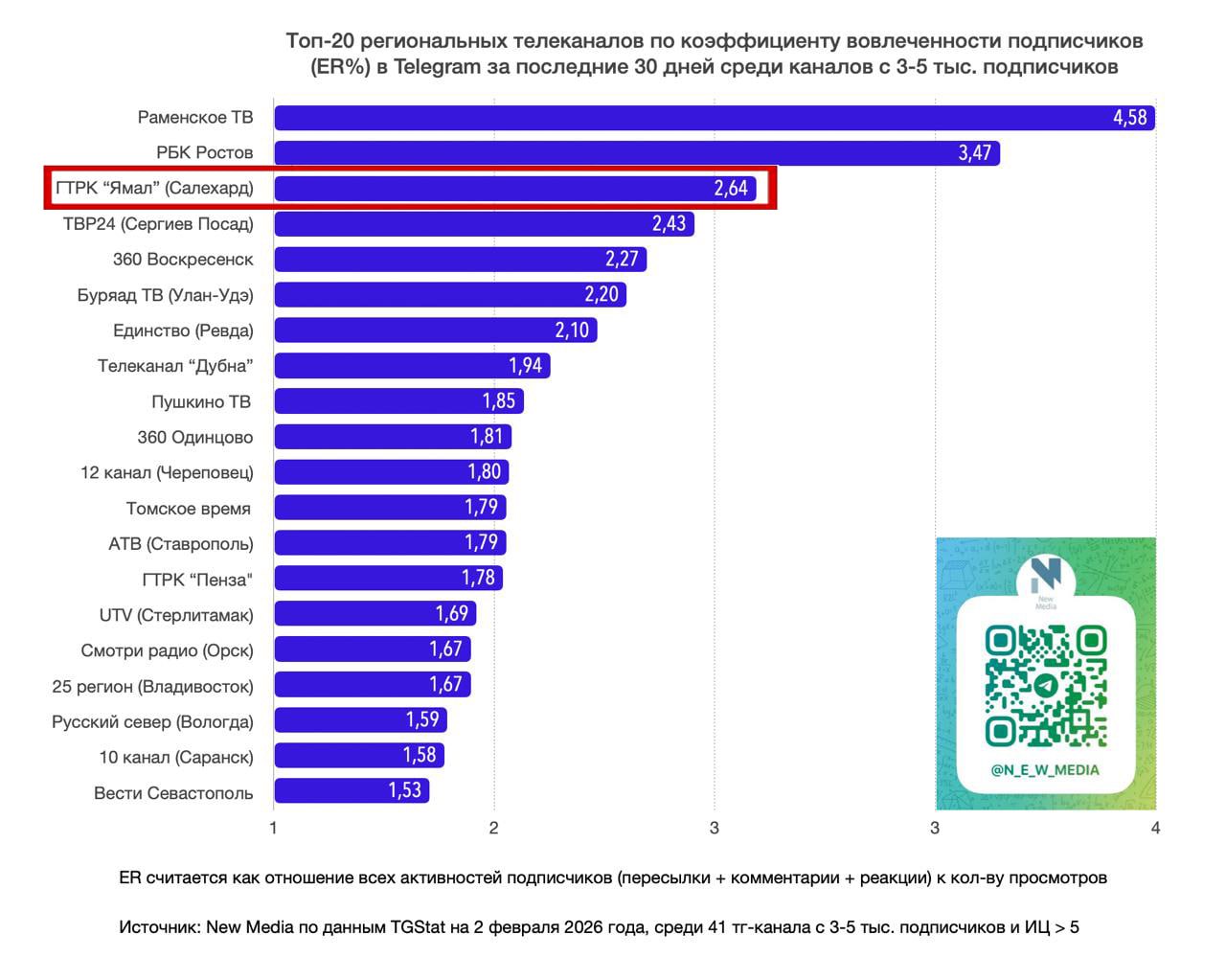 Наш Telegram-каналвошел в число лучших региональных телеканалов по вовлеченности подписчиков.