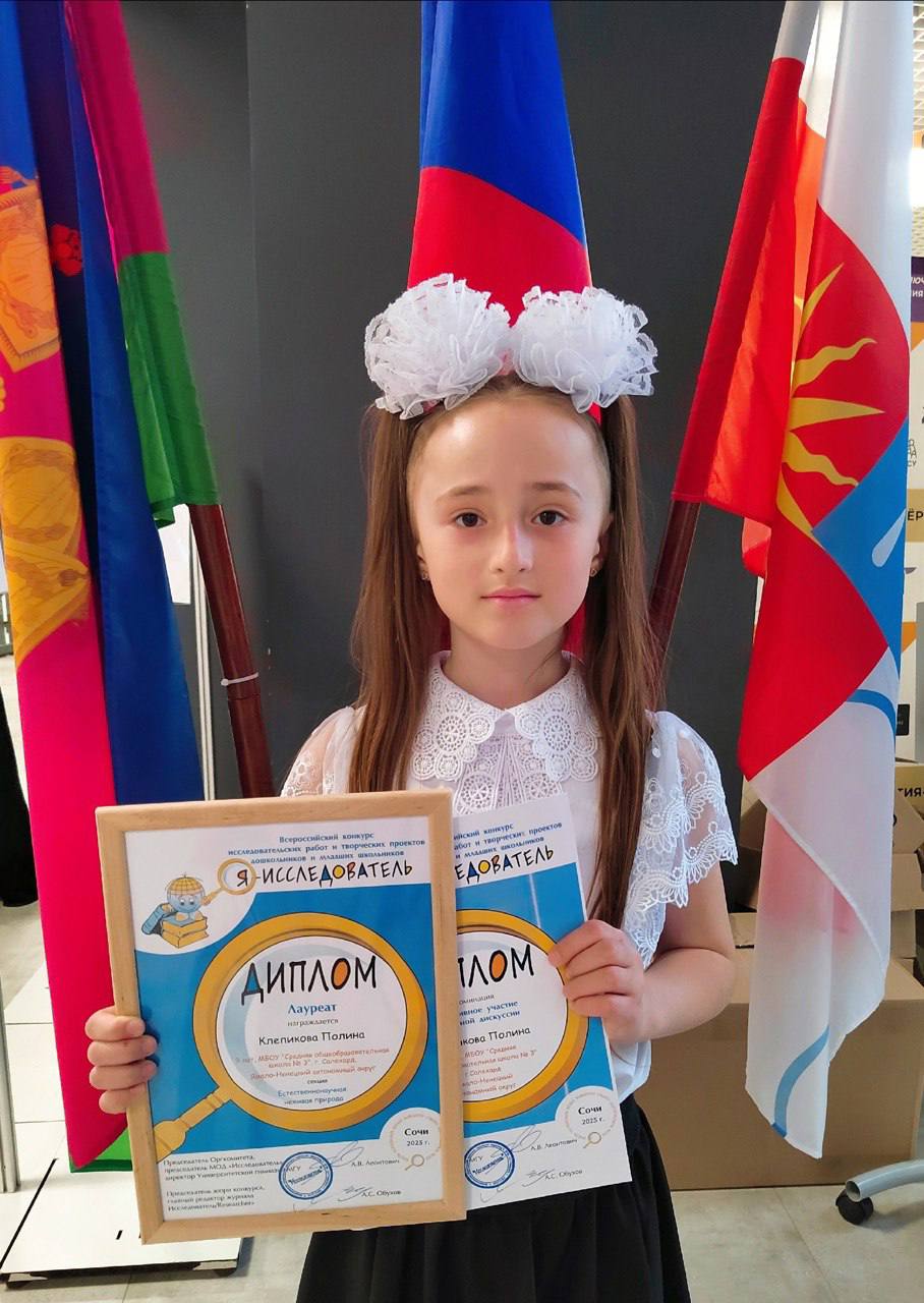 -абсолютная победительница конкурса «Я — исследователь» в 2025 году на городском, окружном и всероссийском уровне с проектом «Театр кукол из вторсырья»;