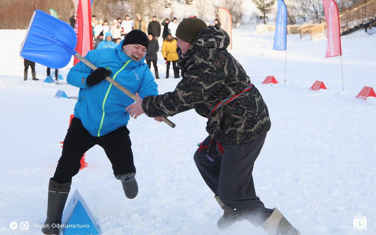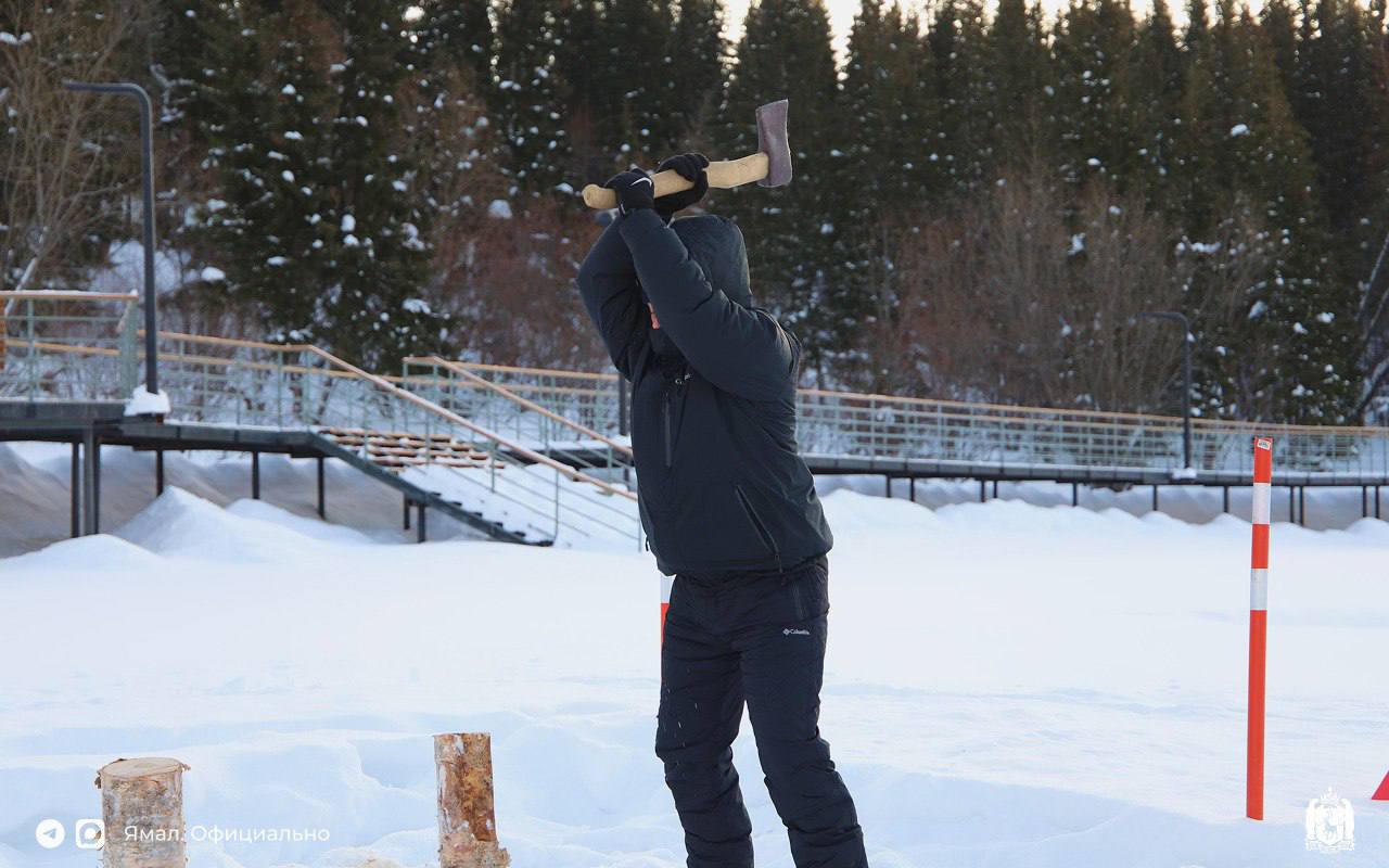 В ней приняли участие шесть команд из разных организаций. Судьи засекали время, а участники очищали площадку от снега, пилили брёвна и кололи дрова на скорость, играли в хоккей баскетбольным мячом.