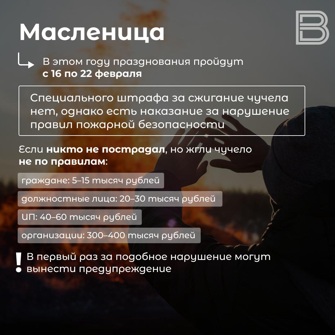 Традиционно ее завершают сжиганием чучела — символическим прощанием с зимой. Но как сделать это безопасно и не нарваться на штрафы — рассказали в карточках.