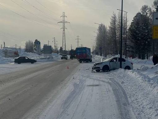 Сегодня, 10 февраля, около 11:00 на перекрестке 3-го и 8-го проездов произошло серьезное ДТП. Водитель Hyundai Accent при повороте налево не уступил дорогу Renault Logan. От удара вторую иномарку выбросило на встречную полосу, где она столкнулась с ГАЗом и врезалась в столб освещения.