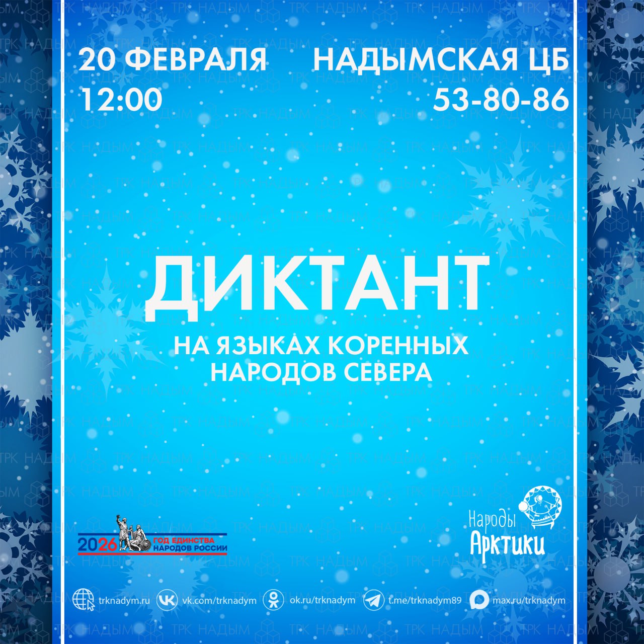 Диктант пройдёт 20 февраля в 12:00 в Надымской Центральной библиотеке.