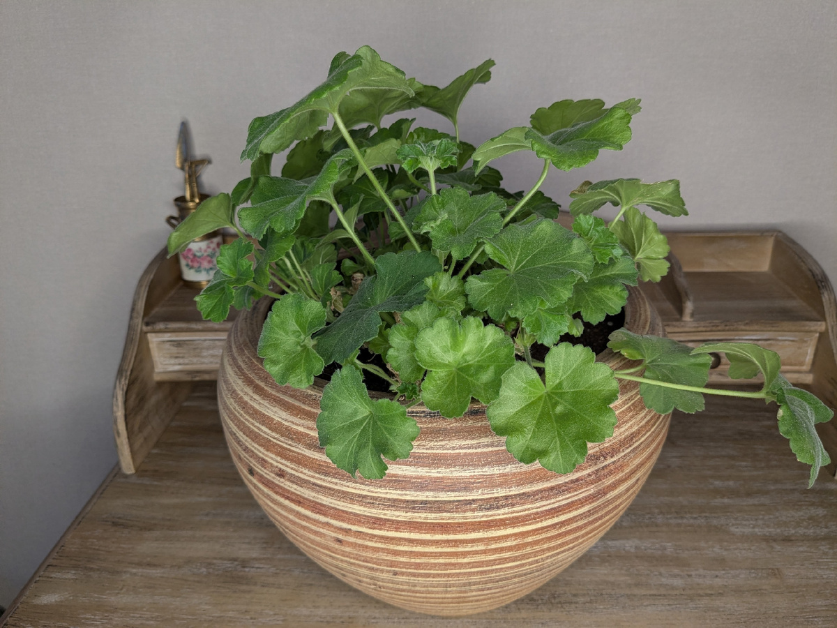 Зеленый вызов с пеларгонией Albina добавляет интереса в уход. Несмотря на то, что этот сорт уже 300 лет украшает дома, добиться от него роскошного цветения пока не удалось. Махровые цветы впечатляют, но куст из-за своей размашистости можно назвать проблемным. Поэтому, чтобы ограничить его разрастание, осенью был проведен кардинальный этап — жесткая обрезка.