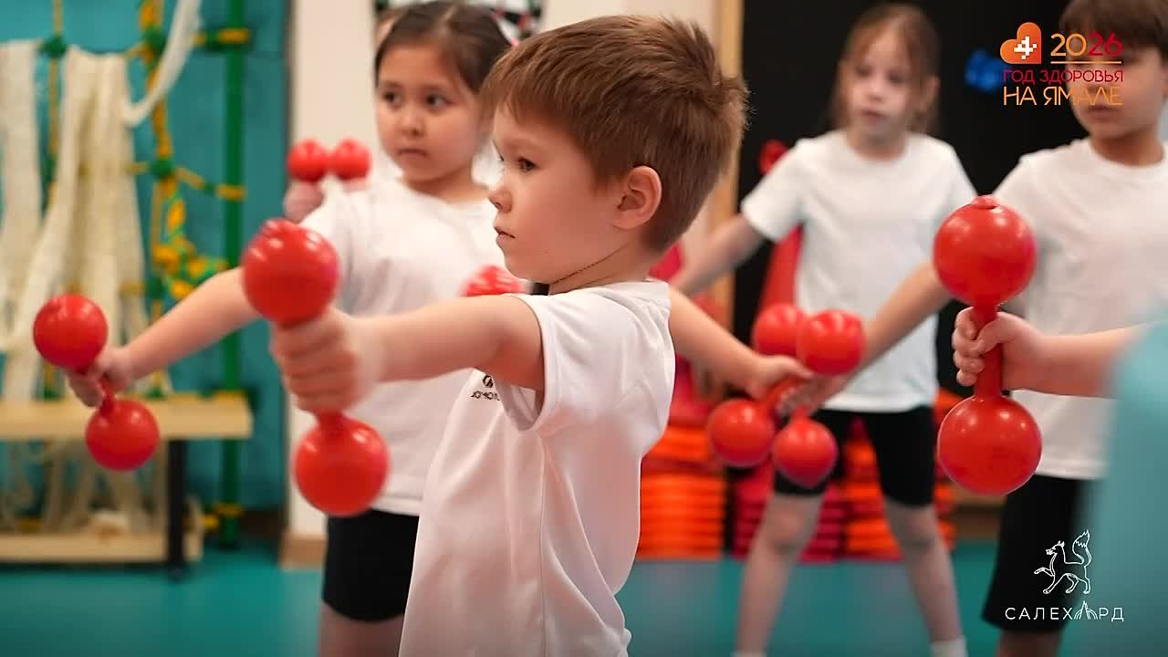 Как правильно начинать день, знают все малыши детских садов Салехарда. Сегодня ребята из подготовительной группы детского сада «Синяя птица» показывают свой вариант утренней зарядки. Занятие ведёт инструктор физической культуры Алина Гизатуллина.