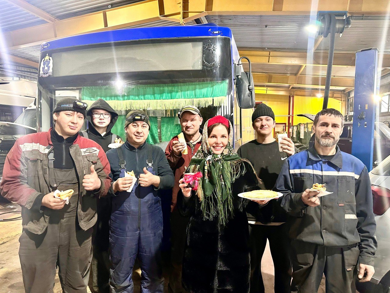 В Салехарде блинами угощают даже там, где обычно не до праздников. Водители и механики АТП получили домашнее угощение в самом начале рабочего дня — женская половина коллектива испекла для них горячие блинчики, вкладывая душу. Говорят, с таким завтраком и дорога веселей.