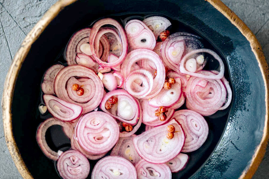 Маринованный лук-шалот — это быстрое и вкусное дополнение к вашим любимым блюдам. Его кисло-сладкий оттенок и легкий пикантный привкус от сычуаньского перца могут совершенно преобразить вкусовую палитру любого рецепта, сообщает Дзен-канал "Китай на вкус".