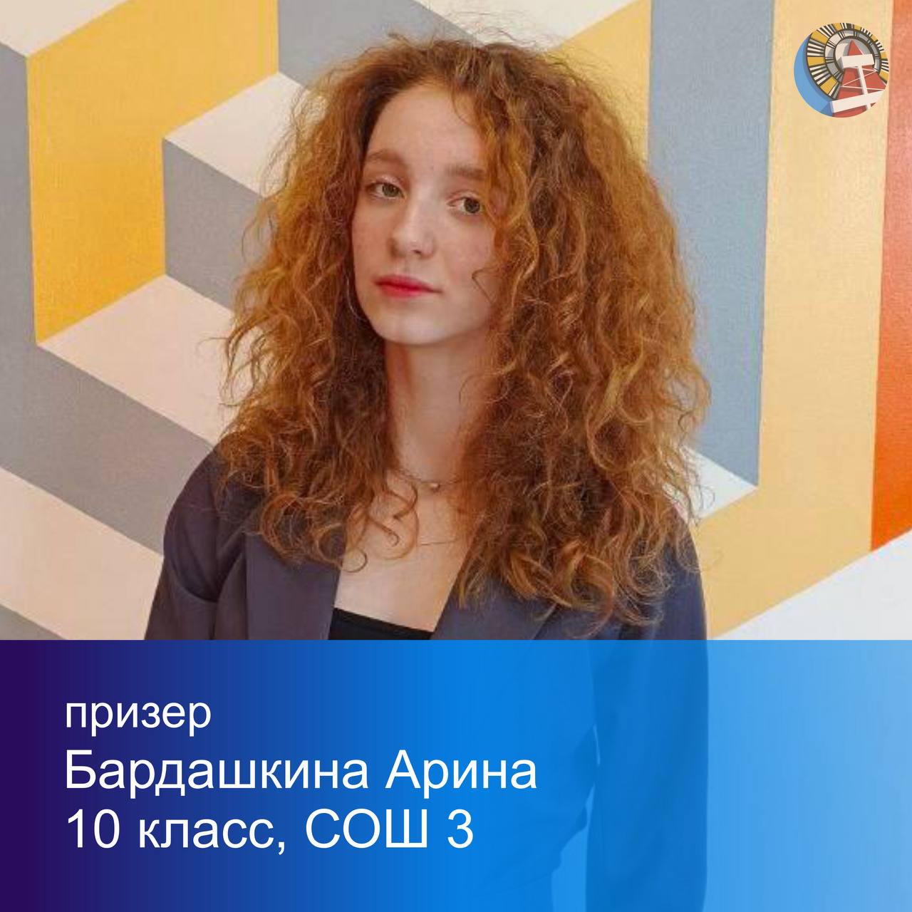 Бардашкина Арина, 10 класс, СОШ № 3;