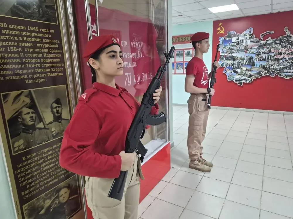 В преддверии 23 февраля лучшие обучающиеся, добившиеся высоких результатов в патриотической и общественной деятельности, спорте и учёбе, торжественно вступили в почётный караул и стали участниками в своих школах Вахты Памяти «Пост №1».