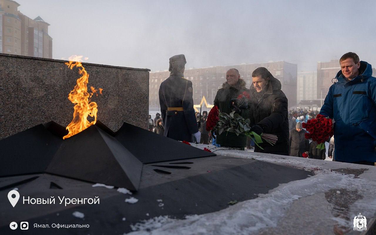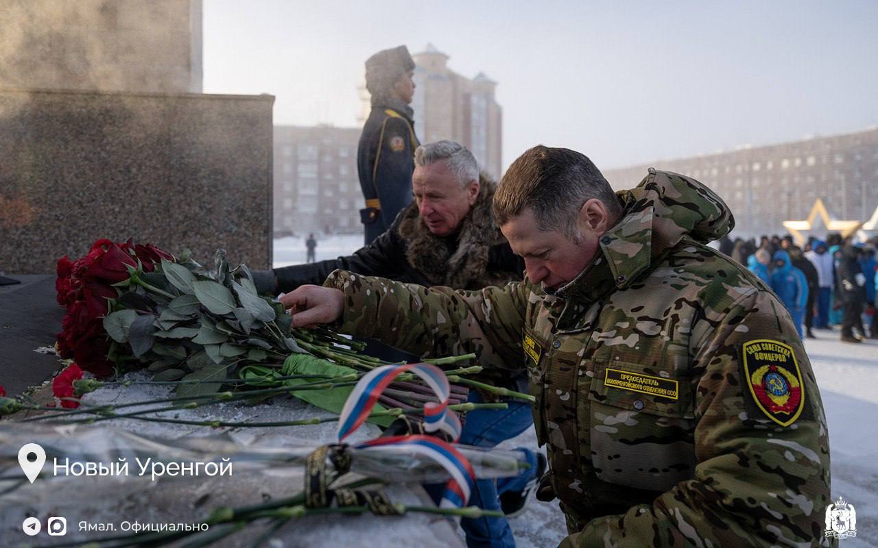 По всему округу отдают дань уважения тем, кто выбрал для себя путь защитника. В Новом Уренгое, на площади Памяти, к мемориалу Трёх войн пришли горожане с цветами. Вместе с ними разделил этот момент губернатор Дмитрий Артюхов.