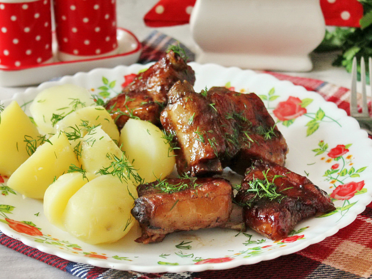 По завершении приготовления румяные ребрышки подаются на стол горячими. Их можно сочетать с гарниром из картофеля или риса, свежими овощами или даже просто с хлебом, что делает блюдо универсальным для любой трапезы.