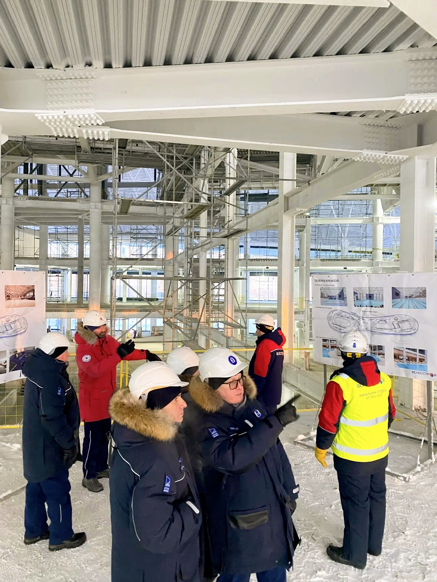 Практическая часть мероприятия включила выездное посещение строящихся объектов в Новом Уренгое. Участники осмотрели социально значимые объекты, находящиеся в различной степени строительной готовности, включая детскую школу искусств, мини-футбольную арену, культурный центр, а также крупные инфраструктурные и административные комплексы.
