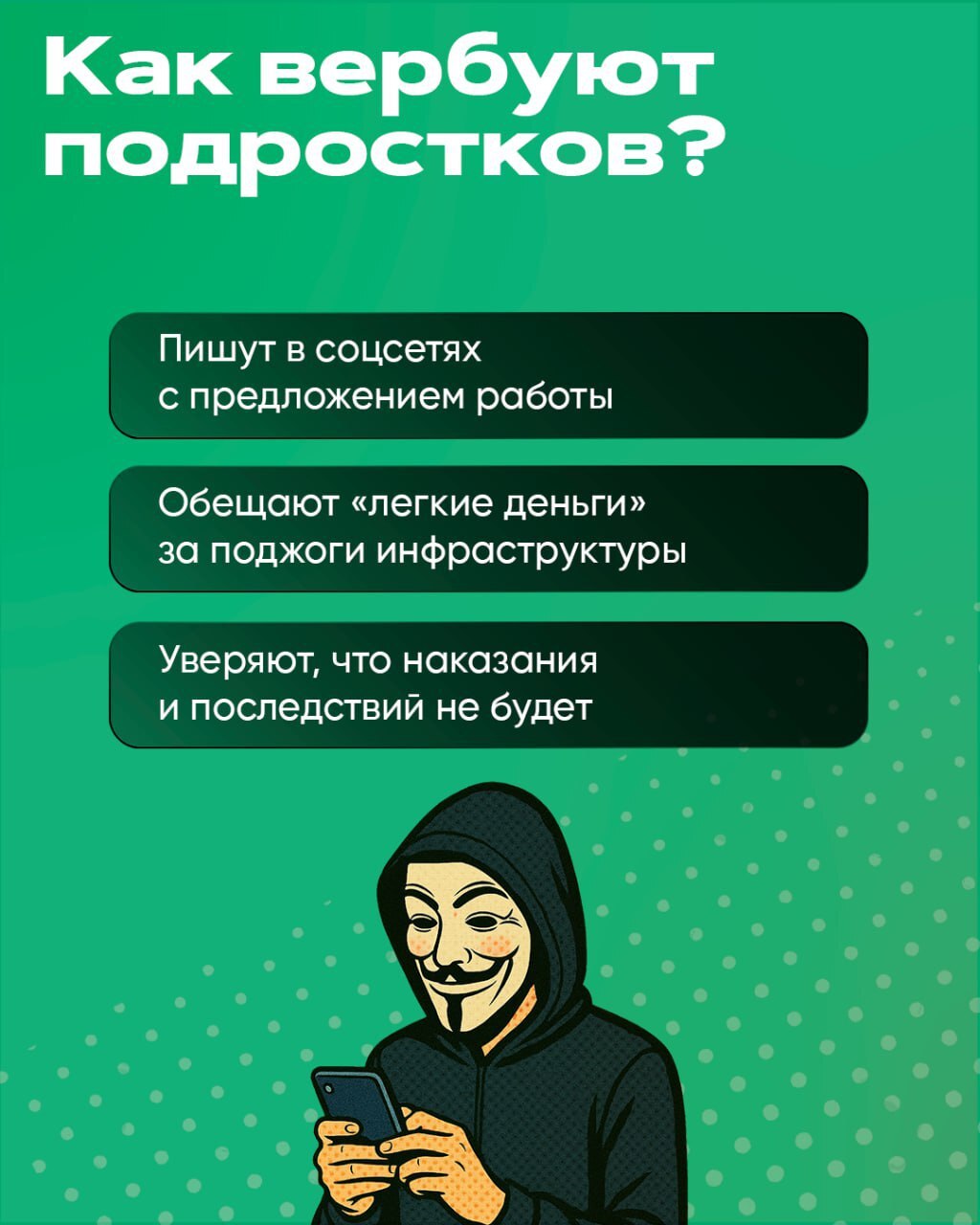Иностранные вербовщики обещают деньги за поджоги? Знай, тех, кто соглашается, ждёт не вознаграждение, а уголовная ответственность. Такие преступления квалифицируются как терроризм.