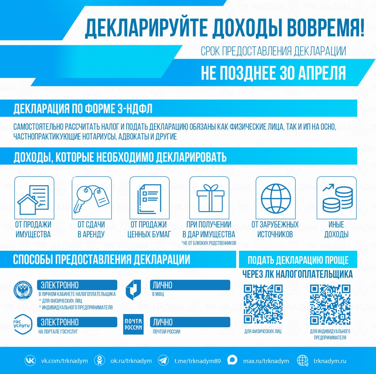 Представить декларацию по форме 3-НДФЛ налогоплательщикам, получившим доходы в 2025 году, необходимо не позднее 30 апреля 2026 года. Пропуск срока грозит штрафом