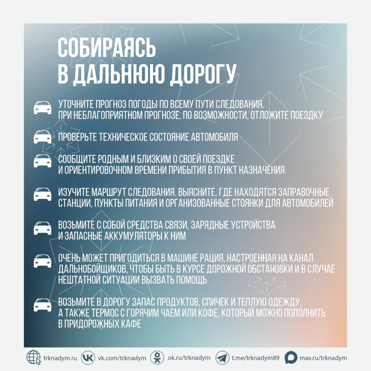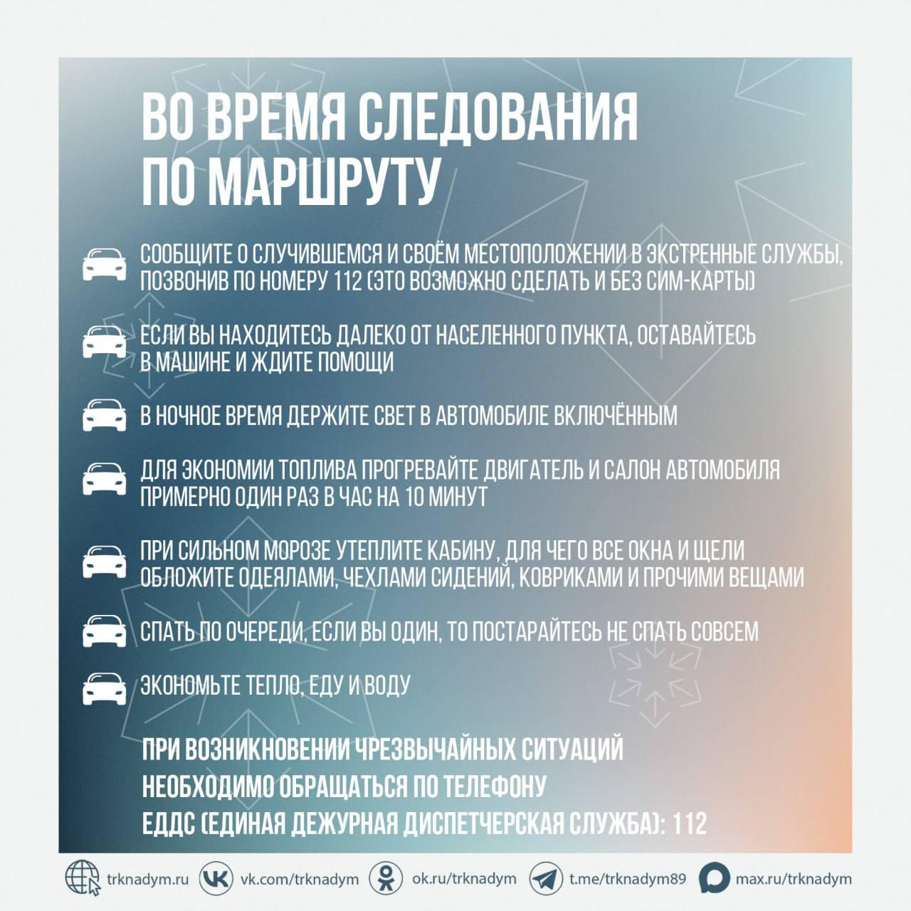 В случае вынужденной поездки будьте особо внимательными и соблюдайте правила безопасности. Подробнее в наших карточках