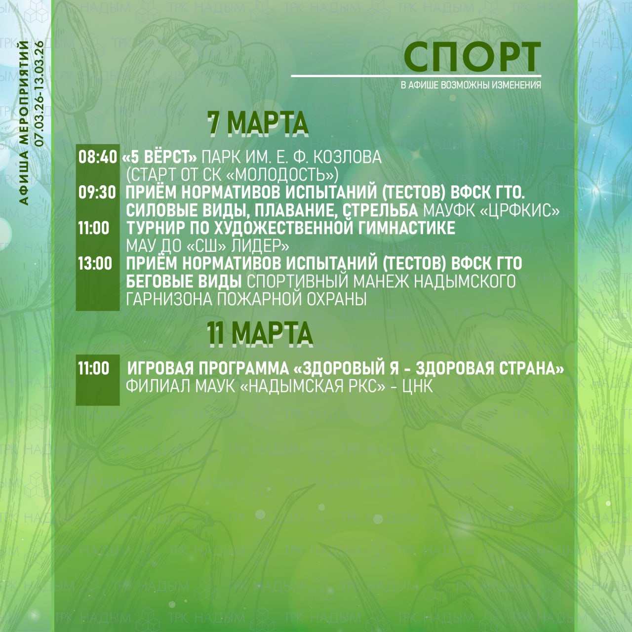 Участвую в спортивных мероприятиях,выполняю нормативы ГТО,прохожу профилактические обследования,активен в социальных сетях,занимаюсь волонтёрством.Если хоть один из пунктов выполняется - у тебя есть шанс стать Лидером здоровья Салехарда! Бегом...