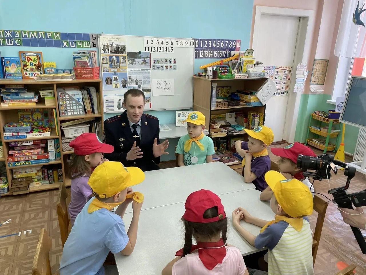 Ну и, конечно же, самое запоминающееся — это общение с настоящим инспектором госавтоинспекции. Лейтенант полиции Александр Трушко рассказал ребятам о своей работе и ответил на все вопросы маленьких почемучек.