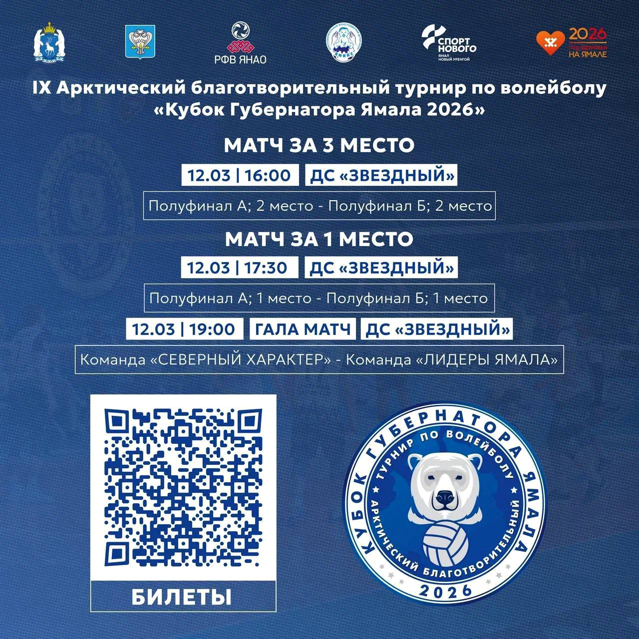 Он и финальные игры девятого Арктического благотворительного турнира на Кубок губернатора ЯНАО пройдут 12 марта во дворце спорта «Звёздный».