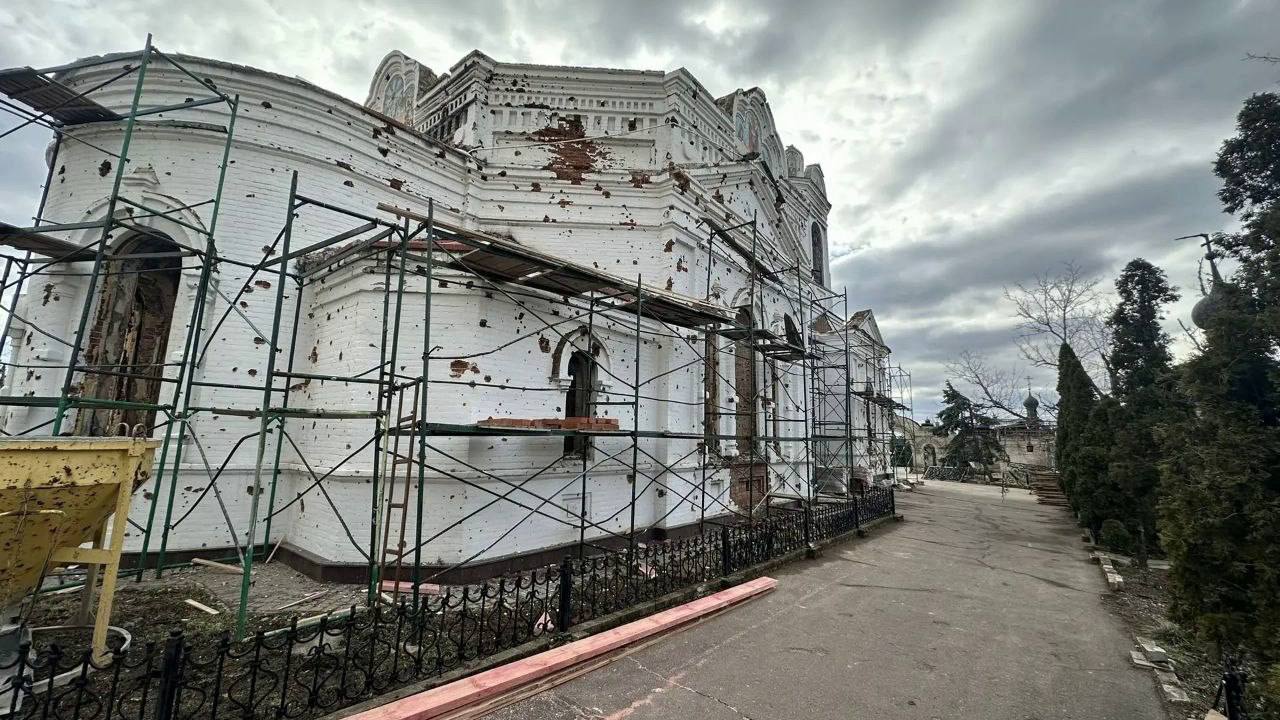 Николо-Васильевский монастырь – святыня, известная во всей России. С весны 2022 года по прошлый октябрь он находился на линии фронта. Храм был серьезно разрушен – от здания 1912 года остались лишь обгоревшие стены с оплавленными батареями внутри. Купола, кровля, отделка стен и полы были полностью разрушены.