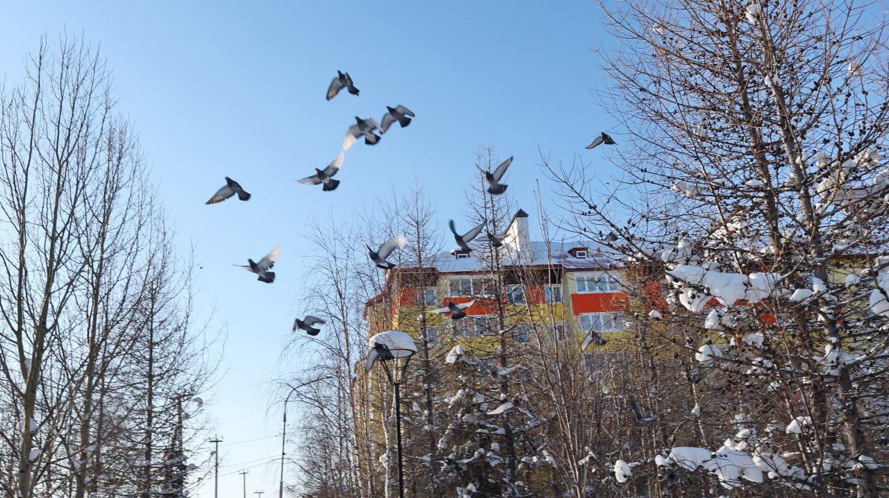 Ловите небольшую фотоподборку солнечного Салехарда! Голуби летают, люди гуляют — город оживает.